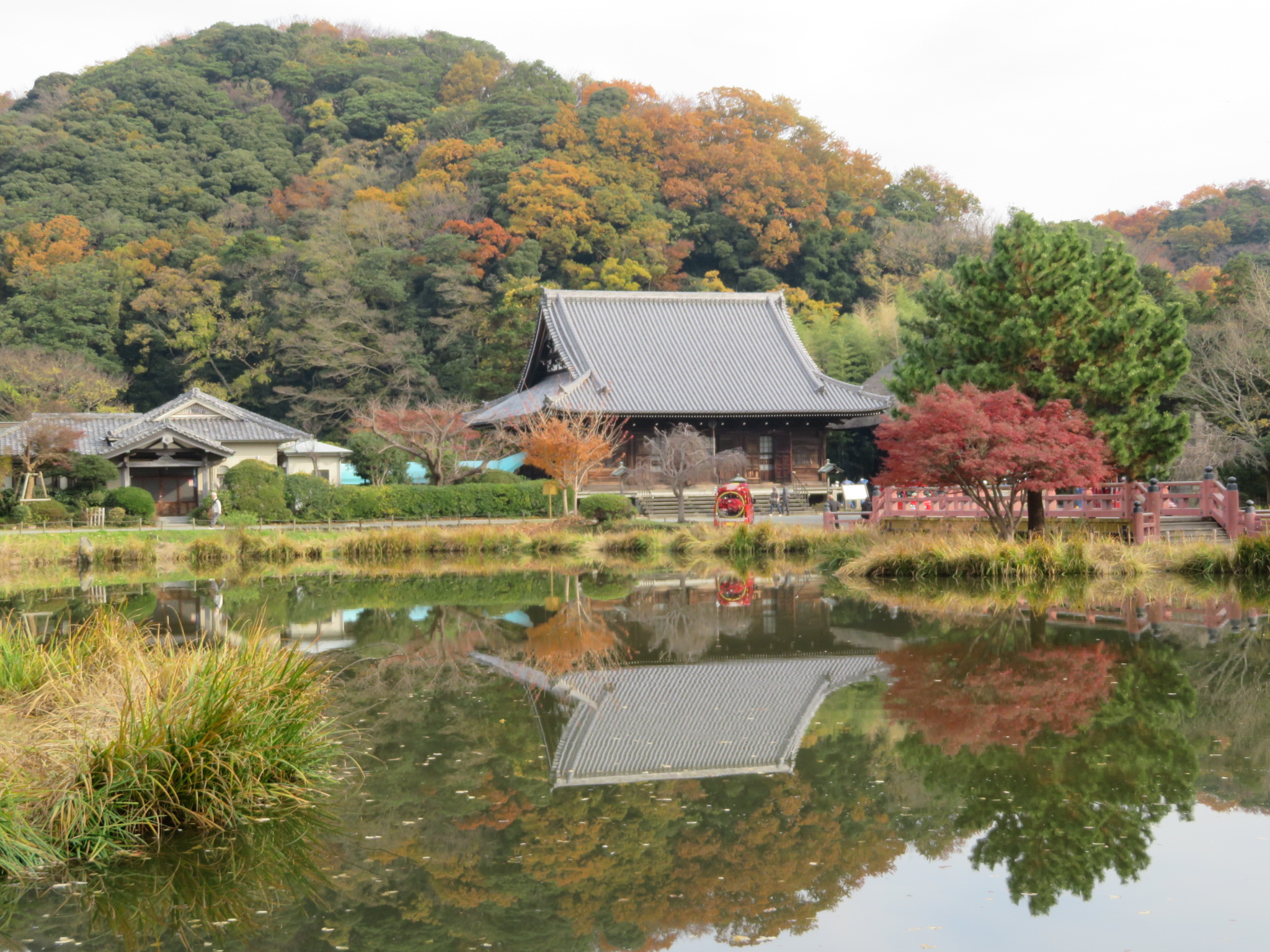 前のトンネルを抜けると、鎌倉北条氏の菩提寺「称名寺」の庭園が広がり、浄土式庭園のが見える。