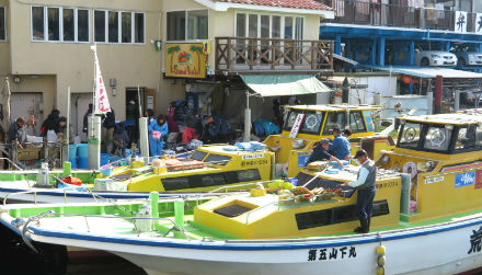 この時期は、アジ、カサゴ、キス、イシモチ等が釣れるらしく、釣った魚の後始末に大勢の釣り人で賑わっていた。